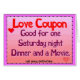 Love Coupon Love Coupon Good for one Saturday night Dinner and a Movie "cut along dotted line"