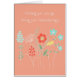 Brightly coloured hand drawn flowers on a peach background, make a cheery card to let someone undergoing chemotherapy know you are thinking of them and wishing them courage.