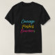 This empowering t-shirt design features the phrase "Courage Pushes Boundaries" in bold, multicolored letters against a dynamic, abstract background. The design conveys a message of strength, resilience, and the ability to overcome challenges. It encourages wearers to face their fears with bravery and determination.