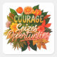 A vibrant square sticker featuring a profusion of colourful flowers in full bloom, symbolising courage and seizing opportunities. The flowers are arranged in a dynamic, upward-reaching pattern, suggesting the bold and proactive nature of courage. The bright, cheerful colours evoke a sense of optimism and positivity, reinforcing the message of seizing life's opportunities with confidence and determination.