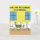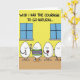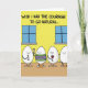 Designed with four egg-shaped, humanlike characters lined up across a sunny yellow background, this card shows them sharing small smiles like friends trading knowing looks 🐇. Three figures are plain white, while the second from the left stands out in green and purple horizontal stripes, hinting at a shy desire to fit in while still being noticed. Two simple blue window shapes sit in the background, suggesting an indoor get-together, and a warm brown floor runs along the bottom like a cozy room. Near the top, a casual, hand-drawn style line of text in dark lettering reads, “WISH I HAD THE COURAGE TO GO NATURAL..” One character holds a slender glass with a pale drink, and another lifts a glass filled with deep red, as if they’re quietly toasting each other 🌷. Their dot eyes and curved smiles feel gentle and slightly bashful, like a friendly group where someone’s secret is met with soft understanding. The scene stays uncluttered, with the windows evenly spaced behind the figures and the striped character subtly pulling focus at center-left. The two blue windows sit above the brown floor, framing the row of egg-shaped friends beneath the dark text.