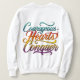 The phrase "Courageous Hearts Conquer" is written in a striking, multi-hued, calligraphic font, rendered on a transparent backdrop, capturing the essence of courage.