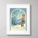 Poster from a wonderful ski resort holiday in the beautiful French mountains of Courchevel, France! This small poster features an arch with a stunning blue-grey mountain landscape and retro ski boards in an orange tribal pattern in the foreground. The rest is in a lovely light blue tone with the location lettering in a modern font. The design is a lovely combination of retro and modern, and I hope you enjoy it!