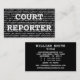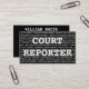 These black and white business cards featuring all the terms and words that lawyers and judges use and are perfect for any court reporter, they are sure to get noticed and stand out in the industry.