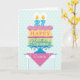 A birthday card for your 27 year old Cousin. "Happy Birthday" is on each layer of the cake with pink decorative icing separating them. A subtle background of yellow and blue anchors the design. Bright colours and a bold graphic styling give this birthday wish a festive feel. You can also change "cousin" to personalise for any one.