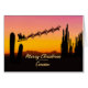 A Christmas card for your cousin showing Santa flying over the desert. Lots of tall cactus are seen in silhouette. Wish a merry Christmas from the desert with a lovely sunset coloured card.