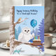 This charming January birthday card features a striking Snowy Owl holding a snowflake balloon beside a rich chocolate birthday cake, set within a cozy winter scene. In the background, a small Barn Owl looks on from the snowy landscape, adding a gentle touch of nature and seasonal charm. Perfect for a cousin who appreciates wildlife, peaceful winter moments, and unique artwork, this nature-inspired birthday card brings warmth, character, and winter wonder to their special day.