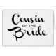 Cute way for the cousin of the bride to let the world know the news. Perfect for bachelorette parties and other wedding events.