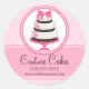 © 2012 Socialite Designs. Our couture cake bakery box seals / stickers have an elegant cake with bow, flowers and swirls inside a lace circle. The background has a subtle damask pattern.