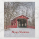 Covered Bridge Red Snow Photo Christmas Wine Label
