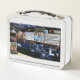 This is a standard metal lunchbox that appears to work just fine. We designed this box ourselves with an uploaded photo and custom text on the front and back. It looks absolutely beautiful except the front of the lunchbox is not centered like it shows in the photo. The print borders don't align with the inset flat part of the box where the preview photo online showed it perfectly centered in there. The back looks nice and centered though.