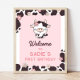 Welcome your guests with our adorable Cow Birthday Welcome Sign! Featuring a baby cow on a pink background, this sign is bordered by playful cow spots and daisies. Perfect for adding a special touch to your party entrance, this welcome sign sets the tone for a fun cow-themed celebration!