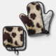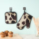 Cow Black White Spots Fur Oven Mitt & Pot Holder Set