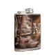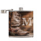 Cow Boy Boots Spur Country Rope Wood Grain Rustic Lasso Monogram Initial Whiskey Flask Personalised