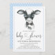 Cow baby shower invitations with cute watercolor baby cow calf wearing a bow tie on a blue polka dot background. These adorable cow baby shower invitations are easily customised for your event by simply adding your details. You can also add a background colour.
