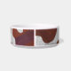 This is a heavy, durable bowl decorated with Tibbies of many colors, the perfect size for hungry/thirsty Tibs. The design is interesting and printing clear.