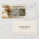Cow business cards featuring a modern, artistic cow design. Great for farms and other businesses. The QR code on the front can be used for your online website. Great mix of traditional and digital to meet your needs. The front also has space for your products and services such as beef, dairy, and feedlot operations. Add your name, title, and contact information including your social media handles to the back of the business card. Customise the text on the front and back. Use the template to create your own cow business cards with QR code.