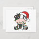 The Cow at Christmas with fairy lights. Funny animals with gifts and snow for the holidays. A sweet Christmas greeting. Cows are cute animals and perfect for Christmas.