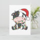 The Cow at Christmas with fairy lights. Funny animals with gifts and snow for the holidays. A sweet Christmas greeting. Cows are cute animals and perfect for Christmas.