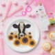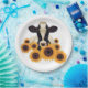 This paper plate is designed with a cow and sunflowers. Great for parties, picnics or any get together.