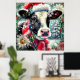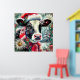 Cow Dreaming of Warmer Times Teal Red Floral Poster