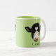 Cow Face on Lime Green Two-Tone Coffee Mug
