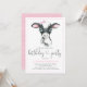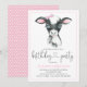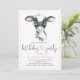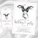 Cow birthday party invitations with cute watercolor baby cow calf wearing a pink bow on a pink polka dot background. These adorable any number cow birthday party invitations are easily customised for your event by simply adding your details. You can also add a background colour.