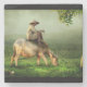 Cow Grazing with Farmer in a Scenic Pasture Stone Coaster