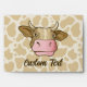 Cow's head illustration. Seamless cow pattern background. Custom text.