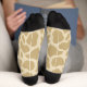 Cow's head illustration. Seamless cow pattern background. Custom top stripe colour. Custom text on each sock.