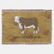 Cow hide mixed leather grain (photo, faux, not real).  Yellow and brown colours.  Light brown bull in grass graphic and customisable text.