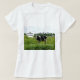 Black and white cow standing in the pasture, with a little humourous saying: "I'm outstanding in my field!"