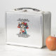 This is a standard metal lunchbox that appears to work just fine. We designed this box ourselves with an uploaded photo and custom text on the front and back. It looks absolutely beautiful except the front of the lunchbox is not centered like it shows in the photo. The print borders don't align with the inset flat part of the box where the preview photo online showed it perfectly centered in there. The back looks nice and centered though.