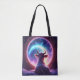 Cow in Space Looking at Earth Whimsical Rainbow Tote Bag