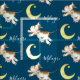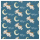 Original watercolor moon jumping cow art personalised name fabric. Cute jumping cow and happy moon repeat patterned fabric. Background colour can be changed if required currently dark blue. Other matching items are available. Original watercolor painting and pattern design by Sarah Trett for www.mylittleeden.com