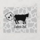 Farting cow silhouette. Seamless cow pattern background. Vector elements with fully customisable colour fills. Custom text on both sides.