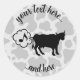 Farting cow silhouette. Seamless cow pattern background. Vector elements with fully customisable colour fills. Custom text.
