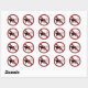 Farting cow silhouette inside a red prohibition circle. Vector elements with fully customisable colour fills. Custom text.