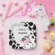 Cow party tableware cow pattern personalised name party plates. Cute baby cow for farm barnyard birthday.