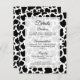 Details wedding invitation enclosure card. Black and white seamless cow background pattern.