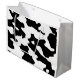 Farm animal and Country theme black and white cow print spots and splotches pattern. The pattern is reminiscent of Holstein and Friesian cows.
