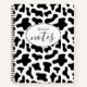 This notebook features a cute black and white cow animal print pattern along with a custom name and the word "Notes" on the front cover.