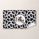 This bath hand towel is shown with a cute black and white cow print.