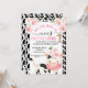 Cute cow themed or have you heard the moos first birthday invitation for a baby girl. This girl's birthday invitation design features a cute black and white cow, a bold cow print pattern and some lovely pink floral roses. This design also features a removable faux gold glitter one om the back and front of the invitation. This invitation is a cute way to invite guests to a cow, farmyard, barnyard themed girl's first birthday party.