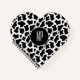This cute heart shape notebook is shown with a black and white cow print with sample initials.