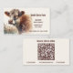 Cow business cards featuring a modern artistic cow design. Great for cattle, cow, dairy farms and more. Brown colours. Add all your business details including your name, title, contact information, and social media handles. Also, use the QR code for your website. Great mix of traditional and digital to meet your business needs. Use the template to create your own cow business cards.
