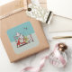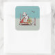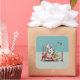 A funny illustration of a black and white cow riding a motor bike or retro moped.