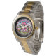 Very good quality watch that looks good whether dressing up or down. The band is sturdy. The watch is rather large so might not work for smaller folks. Recommended as a good gift. Printing is just a touch light but adds a nice touch of personalization.