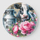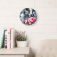This wall clock is shown with a cute farm cow and pink peony flowers art print.