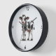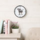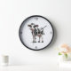 The size of the clock is dramatic and the abstract alcohol ink design is soothing and intricate at the same time. I chose the black frame that adds pop to the blue and gold design. The gold printing would be better in a slightly darker or larger font. I love it and I’m looking for just the right place in ny new apartment. I would recommend this clock for a personal gift or a present. I feel that the quality is excellent for the money! I’m a bit of a clock nut so I’m pretty particular about my purchases. The clock is larger in diameter than many if the clocks I have, so it stands out very well. I think a slightly darker printing color and a moderately larger size would best suit a professional decor or add more impact in a work place item.